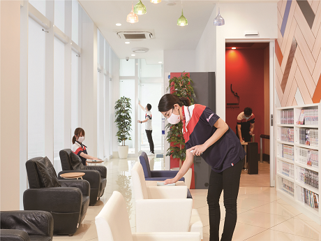 < 開店前だから、接客不要!もくもくと清掃するだけ! >